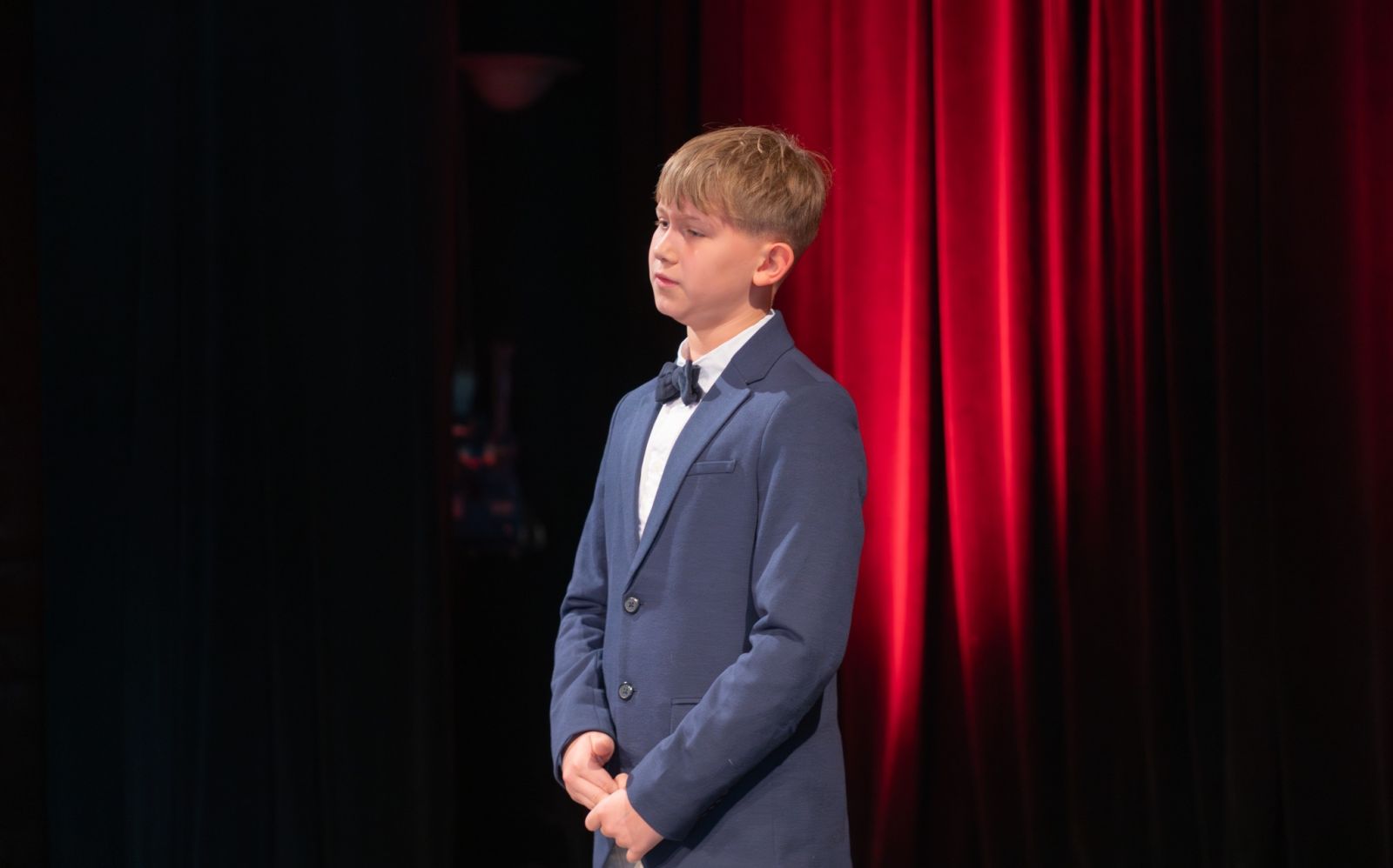Adam przygotował wiersz Wandy Chotomskiej „Po co krowie rogi na głowie?” i zaprezentował się wspaniałe. Miał dużą konkurencję, bo w konkursie warszawskim wzięło udział ok. 200 recytatorów z terenu Mazowsza.