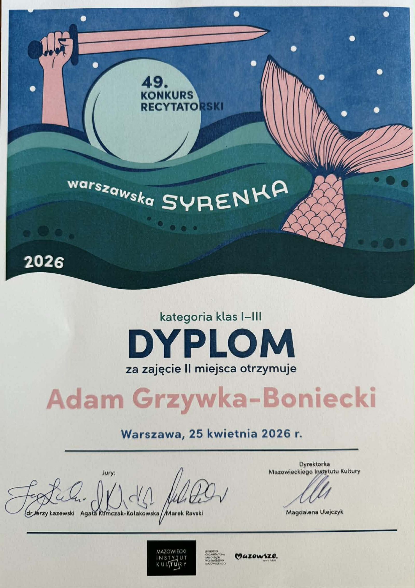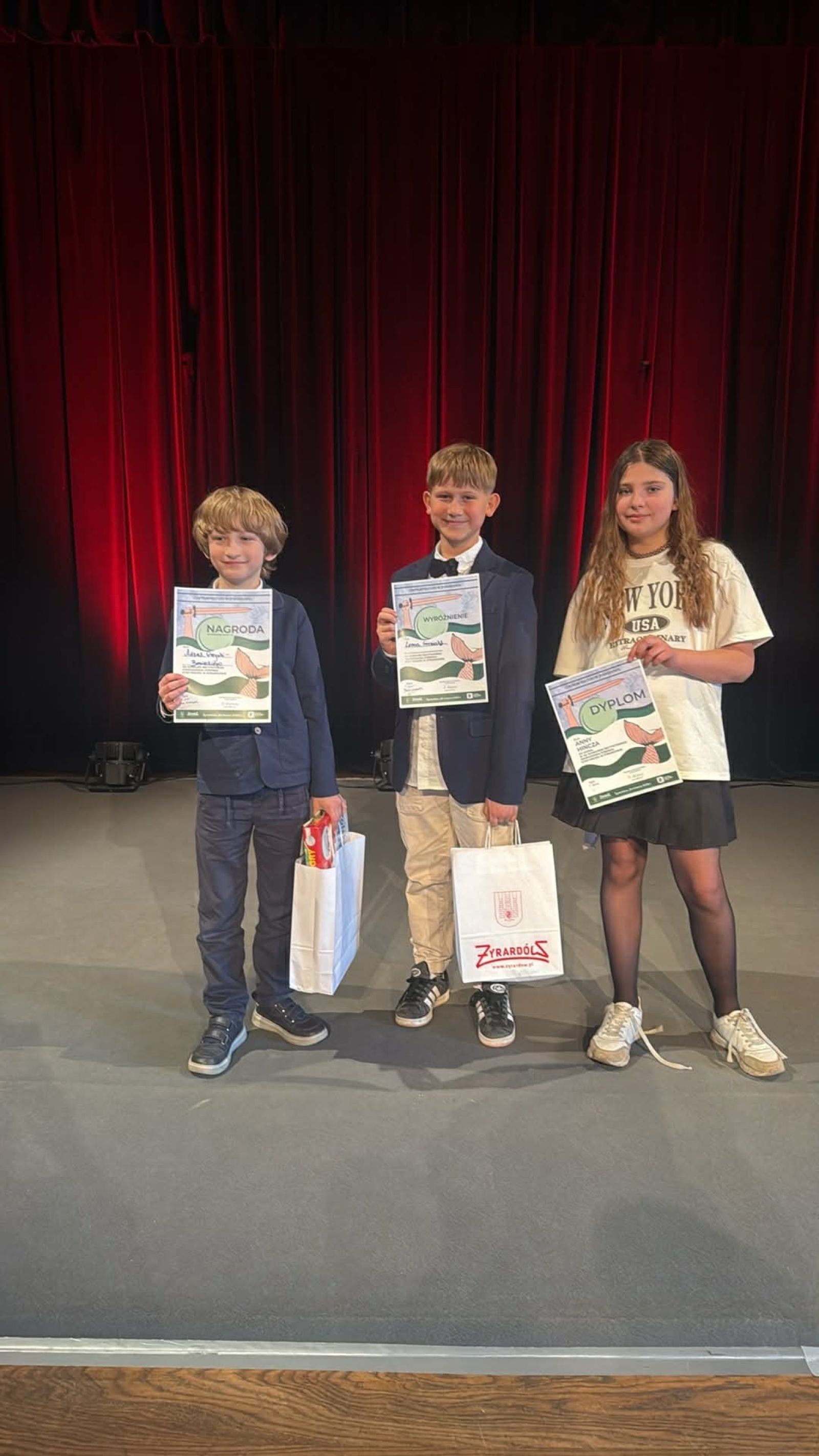 W kategorii klas 1-3 Kuba Mikołajczyk z klasy 2 zdobył II miejsce a Anna Solak z klasy 1 otrzymała wyróżnienie.
